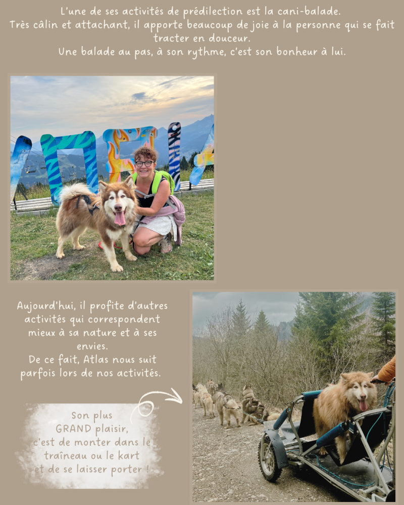 Installé confortablement dans un petit traîneau sécurisé, votre enfant sera tiré par Atlas, notre majestueux Malamute d’Alaska, un chien aussi impressionnant que doux et attentionné.